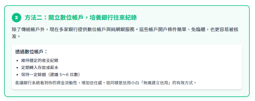 ✅ 方法二:開立數位帳戶,培養銀行往來紀錄