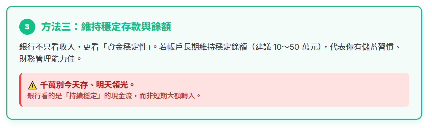 ✅ 方法三:維持穩定存款與餘額