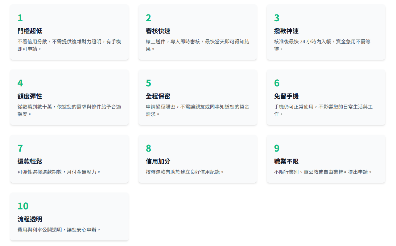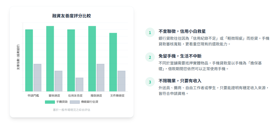 與傳統貸款相比,手機貸款更靈活、更快速、更友善。以下整理出手機貸款的十大優勢👇