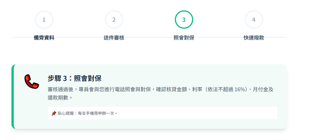 3️⃣ 照會、對保:確認方案、利率、月付金與還款期數