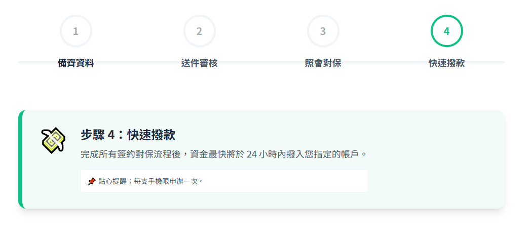 4️⃣ 撥款:完成流程後最快24小時內撥款