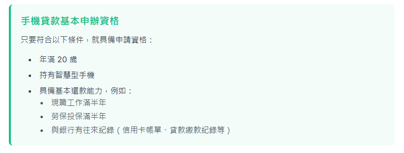 申請手機貸款不需要繁雜條件,只需符合以下兩點即可提出申請: