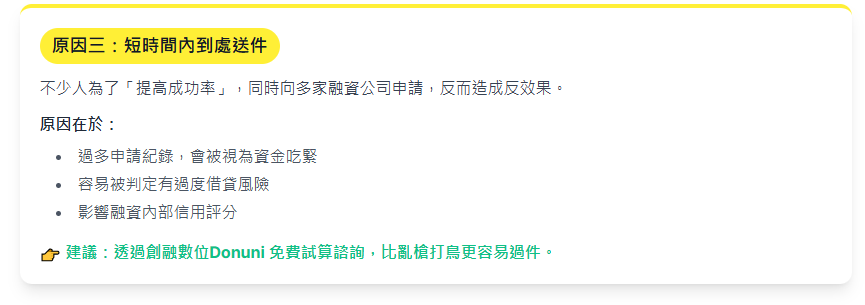 不少人為了「提高成功率」,同時向多家融資公司申請,反而造成反效果。