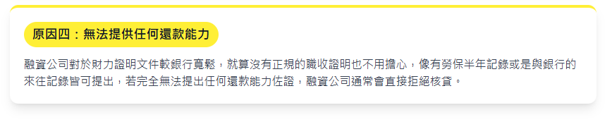 📌 即使是融資公司,也會評估參考過去的還款紀錄。